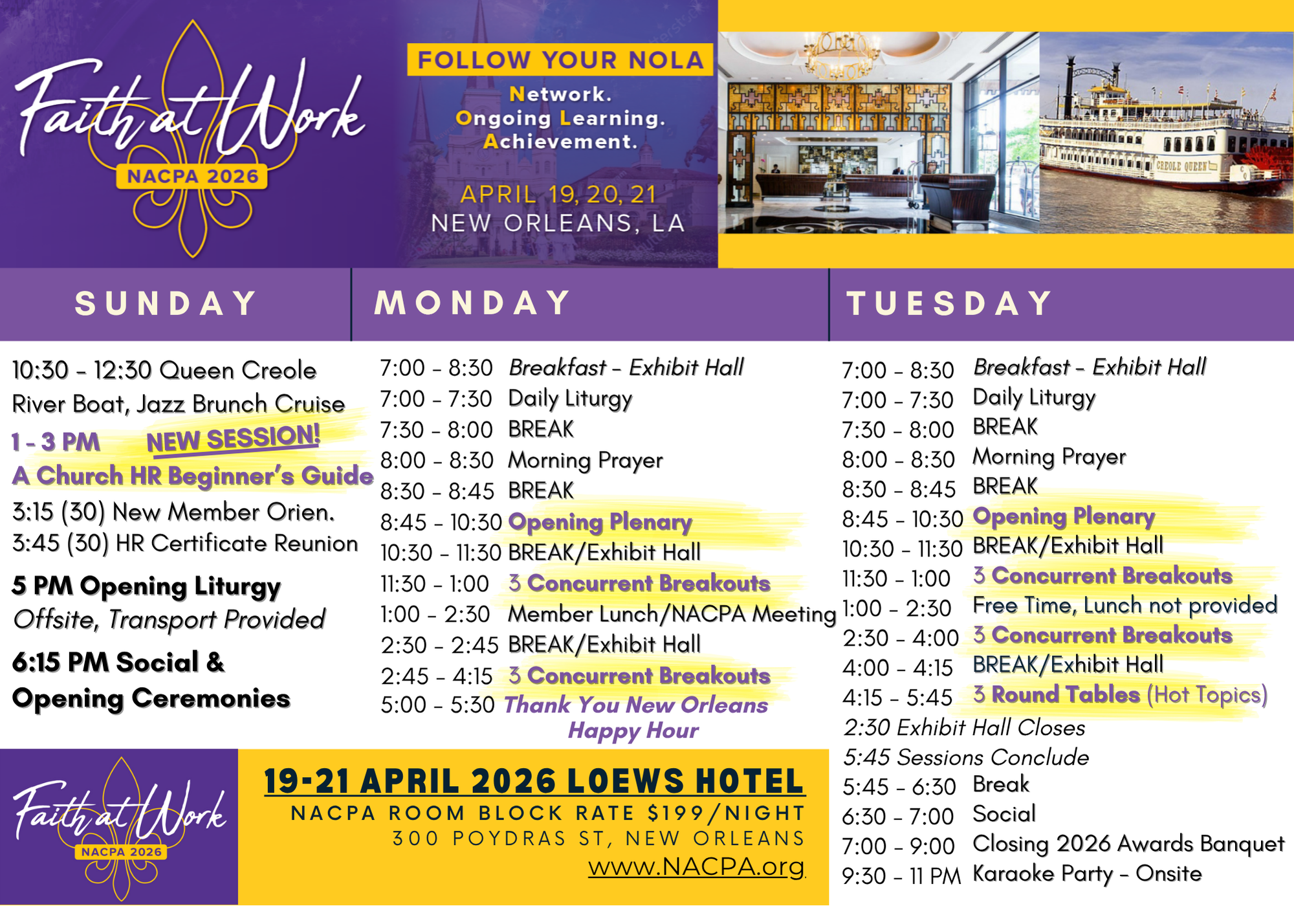 The NACPA Room Block Rate is open for reservations at $199/night |