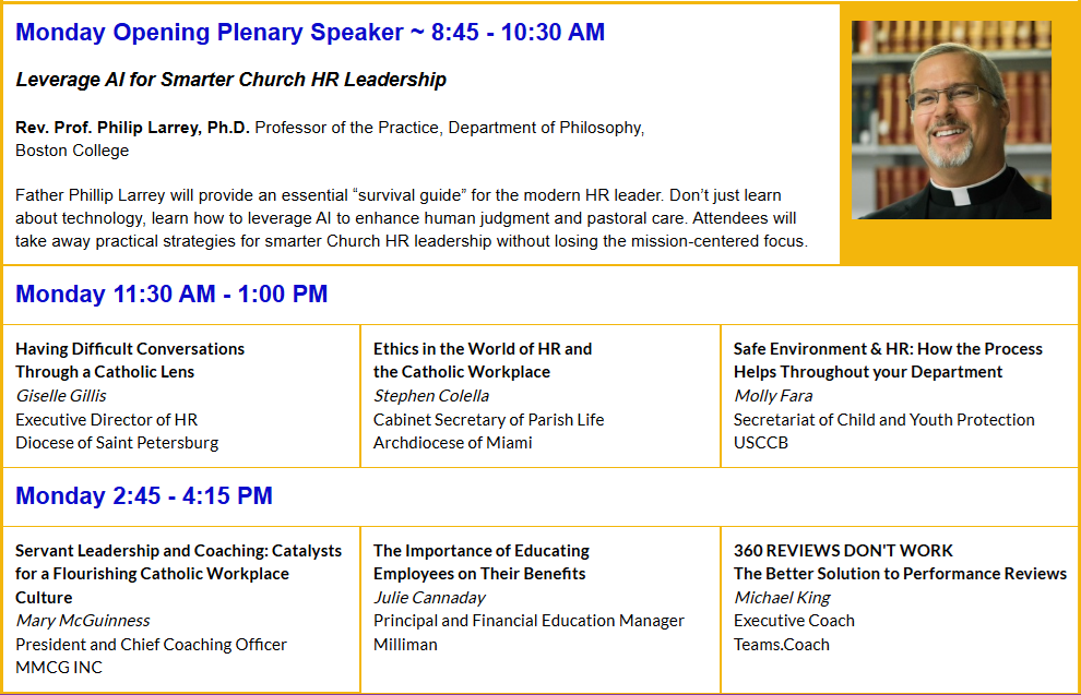 Monday ◦ April 20 ◦ 8:45-10:30am Fr. Philip Larrey, Ph.D., is a Catholic priest and professor of philosophy at Boston College. He previously held the Chair of Logic and Epistemology at the Pontifical Lateran University in the Vatican, where he also served as Dean of the Philosophy Department. His scholarly work focuses on the philosophy of knowledge, critical thinking, and the impact of the digital era on society. Fr. Larrey has authored several influential books, including Futuro ignoto (IF Press) and Connected World (Penguin), which explore the profound effects of digital advancements on modern life. The latter was translated into Italian as Dove inizia il futuro by Mondadori in 2018. His most recent book, Artificial Humanity, published in 2019, offers a deep philosophical analysis of AI's significance for humanity. It has recently been translated into Chinese and was featured at the Hong Kong Book Fair in July. A notable aspect of his work is his engagement with the philosophical implications of artificial intelligence. Fr. Larrey actively engages with industry leaders and scholars at the Vatican, fostering discussions on how technology influences societal structures. Fr. Larrey is a sought-after speaker who travels globally to share his expertise at universities, forums, and conferences. His engaging presentations highlight his thought leadership and deep understanding of the intersection of digital advancements and ethics. Notable organizations he has collaborated with include the United Nations, Harvard University, the Massachusetts Institute of Technology, and the World Congress of Philosophy. Fr. Larrey's insights make him a compelling choice for organizations aiming to deepen their understanding of the ethical implications of AI. Based in Boston, Fr. Larrey is an avid bridge player and a passionate fan of the Golden State Warriors and the Los Angeles Lakers. |