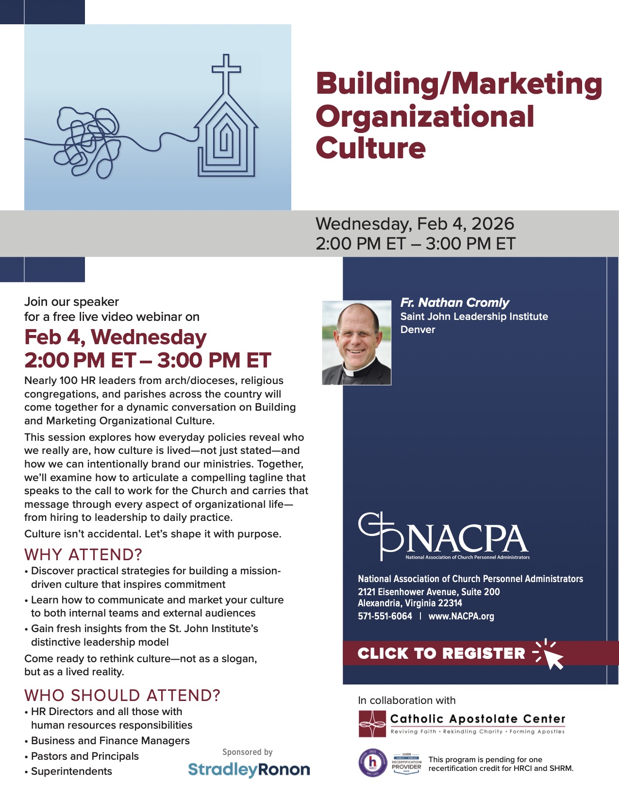 OCT 1 Just Treatment: 9 Ethical Principles for Church HR Administrators with Fr. Frank Donio, S.A.C., D.Min., M.S.C.M. Founding Director, Catholic Apostolate Center, Washington, DC - Sponsorship provided by Key Benefit Administrators